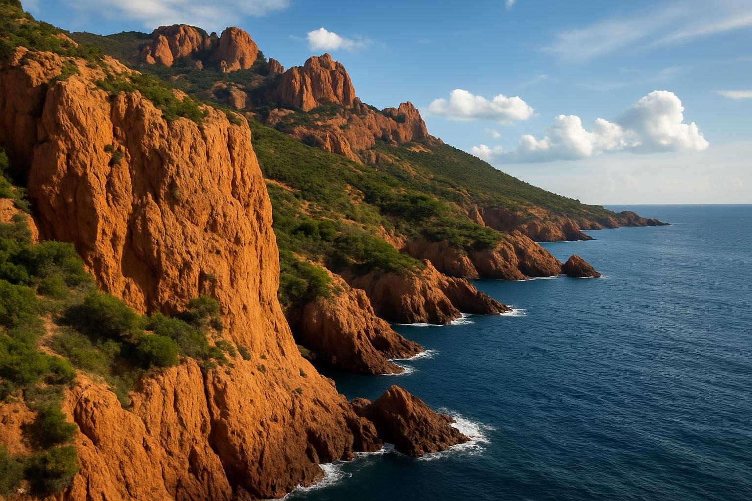 - Le massif de l’Estérel, avec ses roches rouge vif
